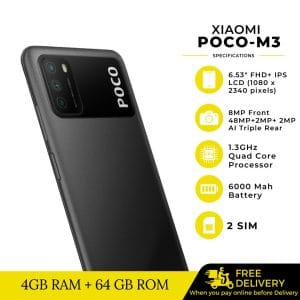 Xiaomi POCO M3 – 4GB/ 64GB – 48MP AI Triple Camera-(Free 20,000mAh Power Bank)