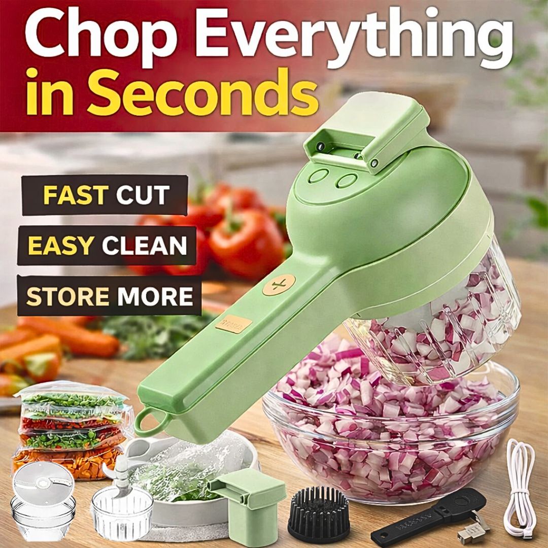 Chop and slice vegetables fast with one simple tool. This multi-functional vegetable cutter helps you prep onions, pepper, carrots, and more in minutes. It also comes with a cleaning brush that attaches, so you can wash dishes too. Plus, you get free reusable vacuum bags to store chopped vegetables and keep them fresh longer. Less stress in the kitchen. More time for you.