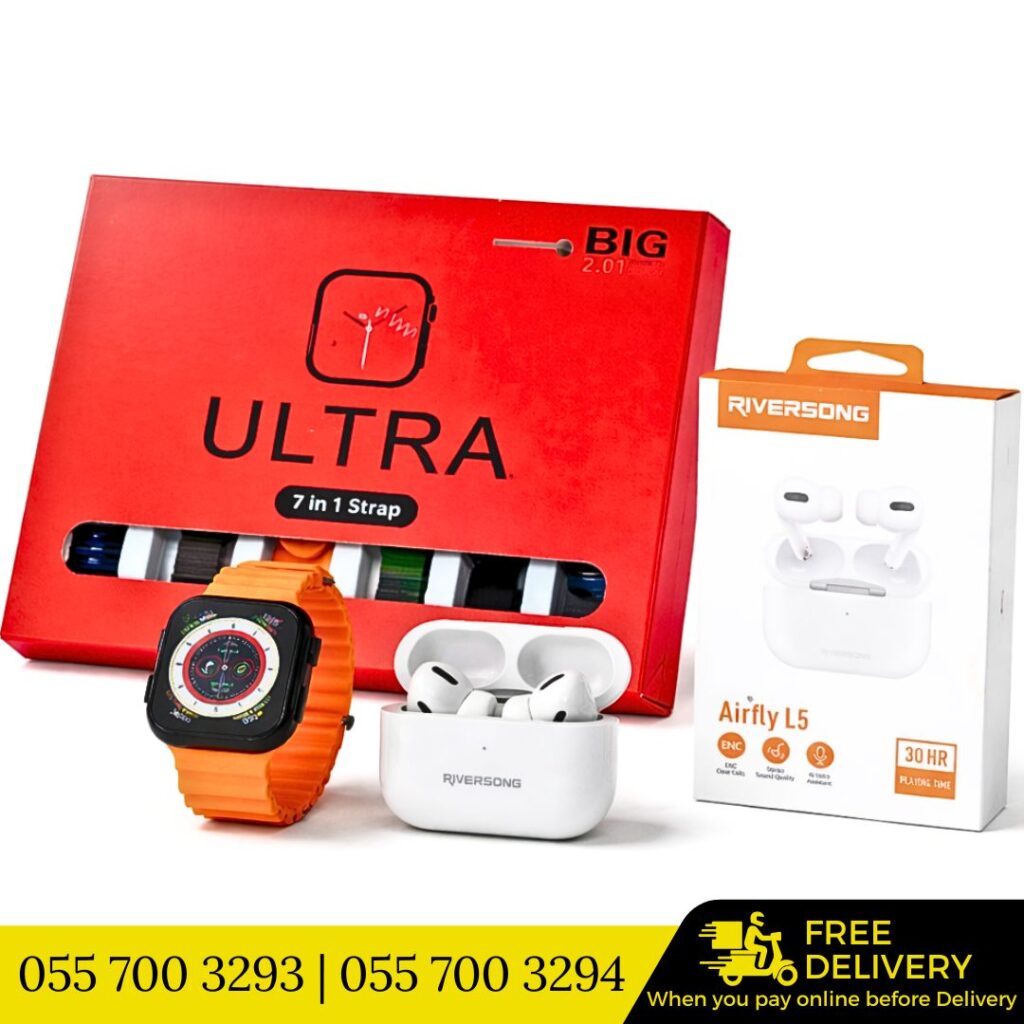 Buy Ultra 7in1 Straps Watch and Riversong Earbuds for GH₵380
