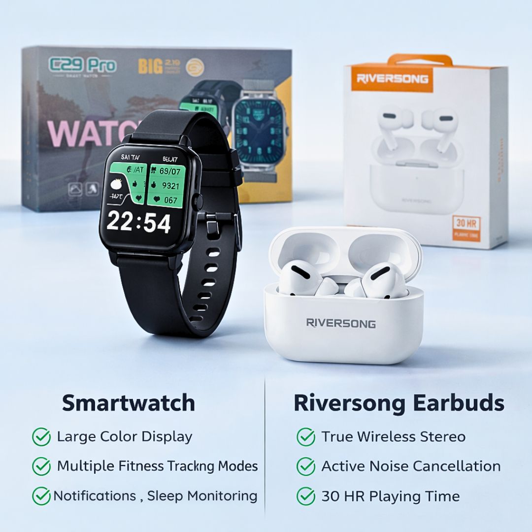 Buy C29 Pro Smart Watch and Riversong Earbuds for GH₵300