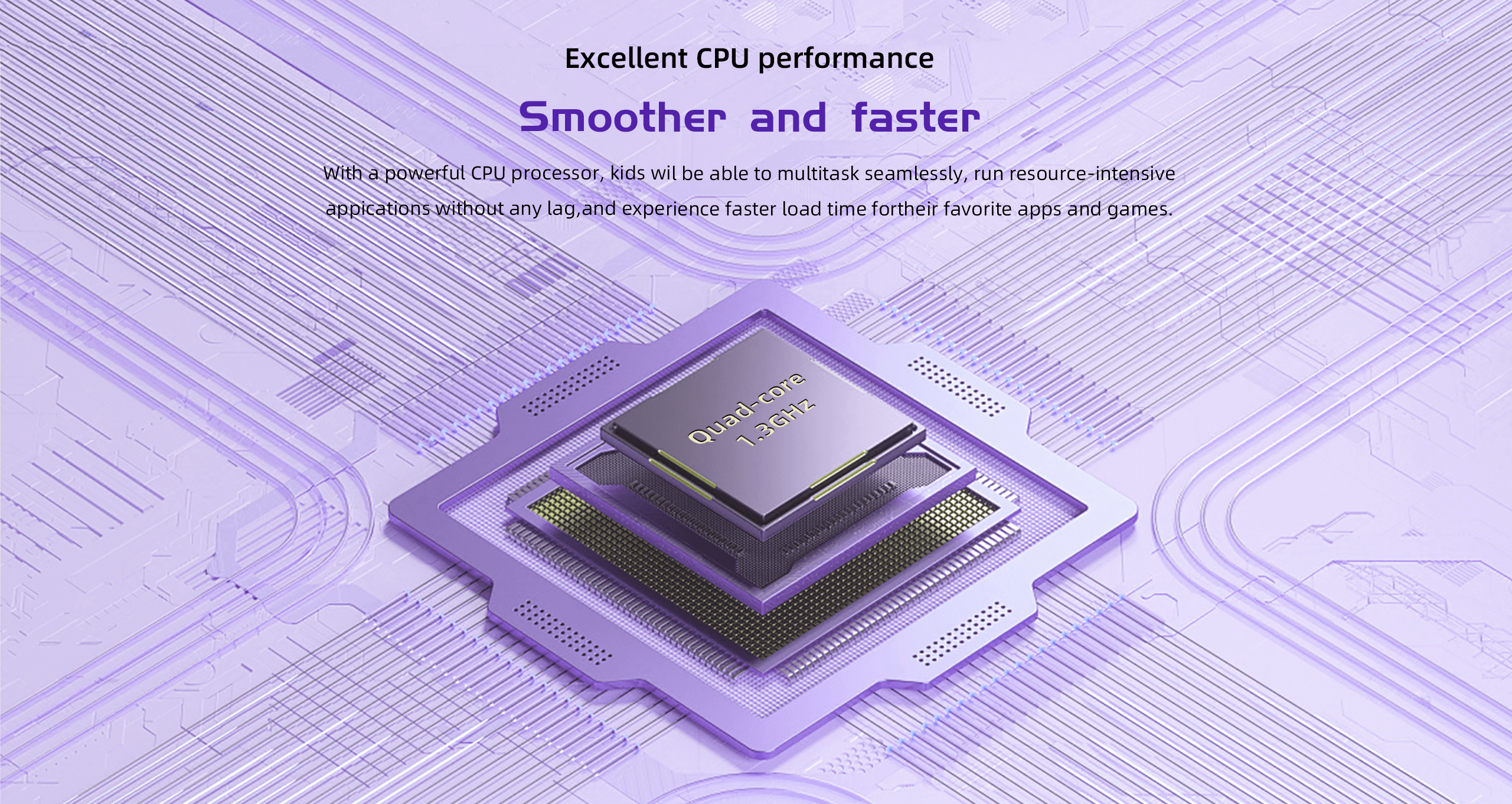 With 4GB RAM and 64GB ROM, the XBOOK KIDS 10s provides ample storage space for apps, games, videos, and more. Powered by a 1.3GHz Quad-Core Processor and running on Android 11, this tablet ensures smooth performance, a user-friendly interface, and long-lasting battery life, making it the perfect companion for long learning sessions and playtime.