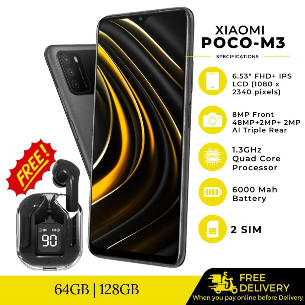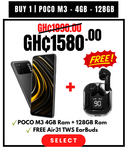 Buy 1: POCO M3 - 4GB/ 128GB Black for GH₵1,580 Get FREE Air31 Earbuds